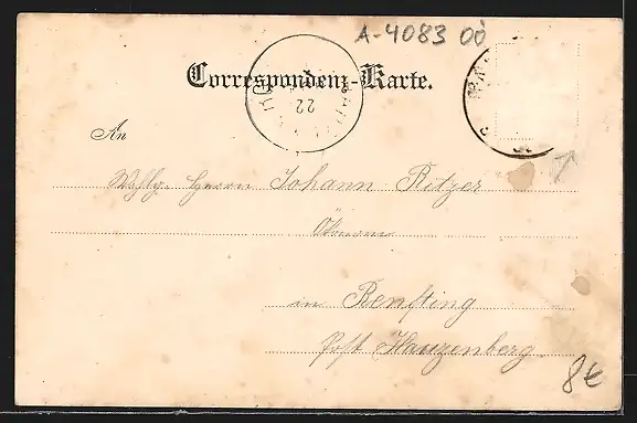 alte Ansichtskarte, gelaufen, Briefmarke entfernt, rückseitig Oberflächenschaden, guter Zustand