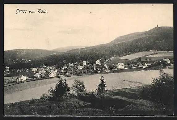 AK Hain bei Zittau, Ortspanorama aus der Vogelschau