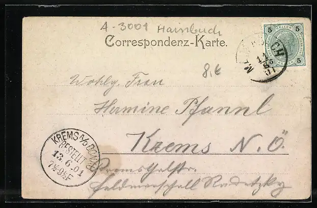 alte Ansichtskarte, gelaufen 1901, minimaler Einriss li. mittig, guter Zustand