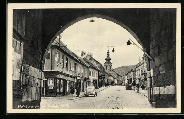 AK Hainburg /Donau, Strassenpartie mit Tordurchgang