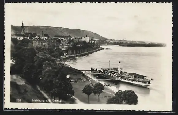 AK Hainburg /Donau, Teilansicht mit Dampfer am Anleger