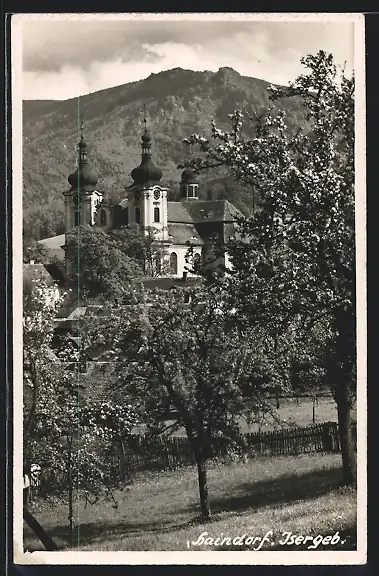 AK Haindorf / Hejnice, Blick zur Kirche