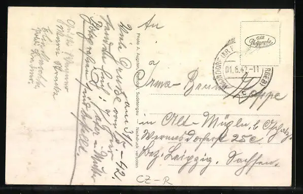 alte Ansichtskarte, gelaufen 1942, Briefmarke entfernt, guter Zustand