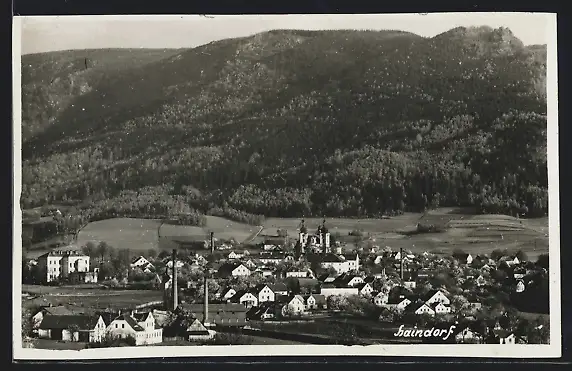 AK Haindorf i. B., Gesamtansicht mit Bergpanorama