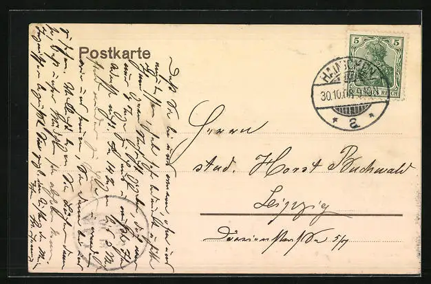 alte Ansichtskarte, gelaufen 1908, guter Zustand