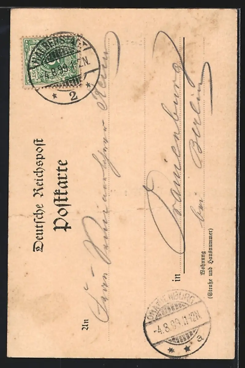 alte Ansichtskarte, gelaufen 1899, durchgehende Bugspur mittig