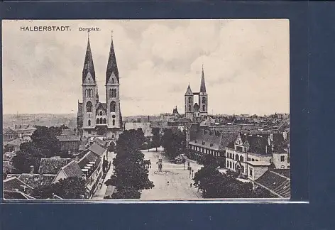 AK Halberstadt Domplatz, gelaufen von 1928, hat leider oben links einen kleinen Knick