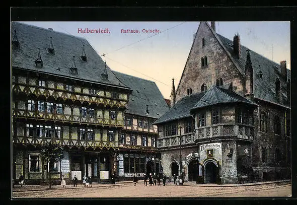 AK Halberstadt, Fischmarkt mit Rathaus und Ratskeller