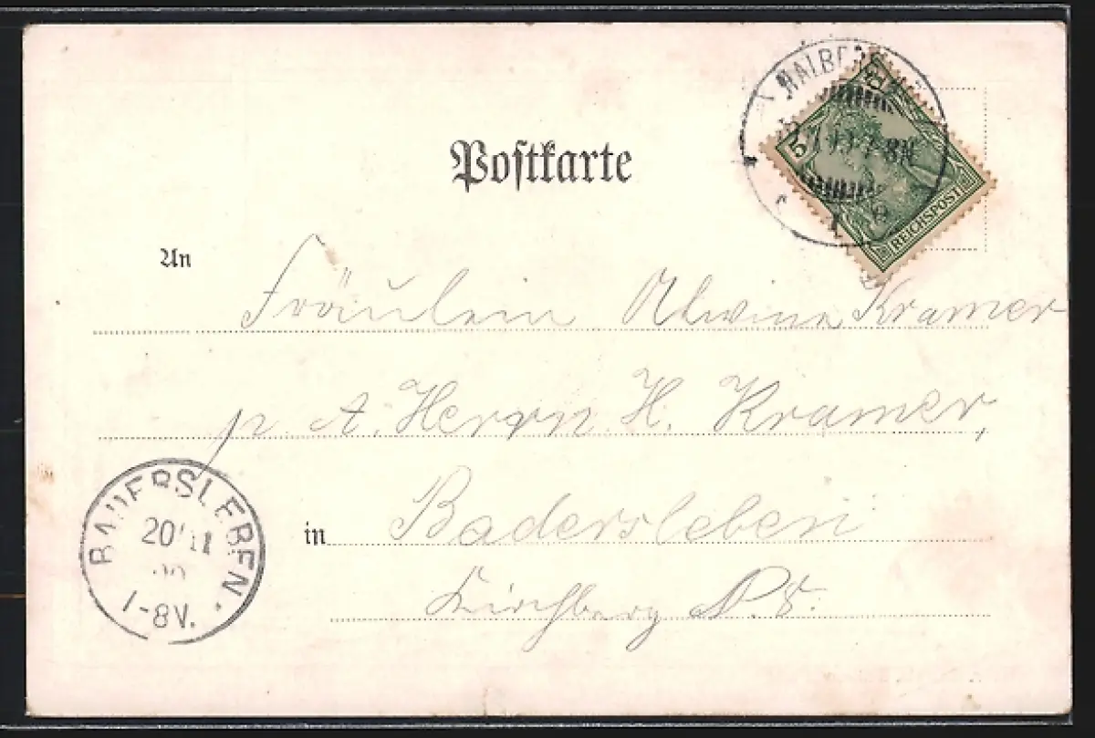 alte Ansichtskarte, gelaufen 1900, Stempelspur, guter Zustand