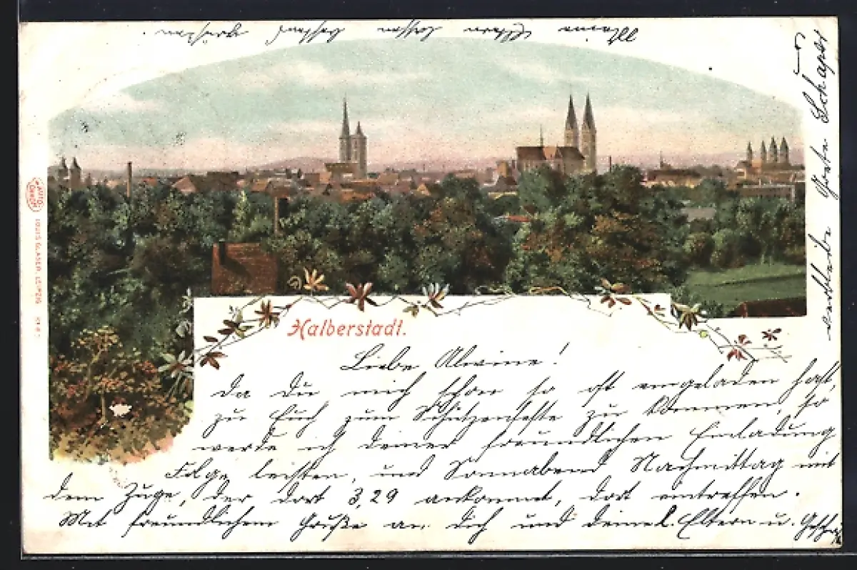 AK Halberstadt, Stadtansicht mit Dom und Kirchen