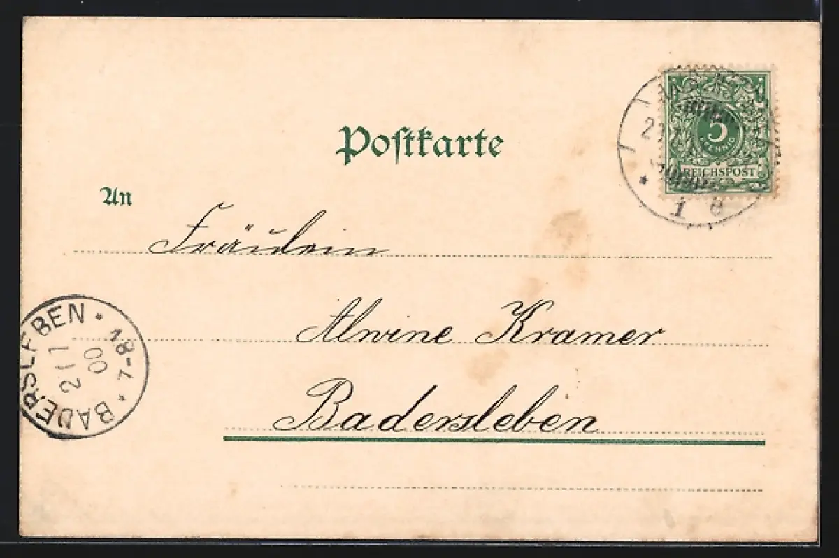 alte Ansichtskarte, gelaufen 1900, Stempelspur, Eckknick oben rechts, guter Zustand