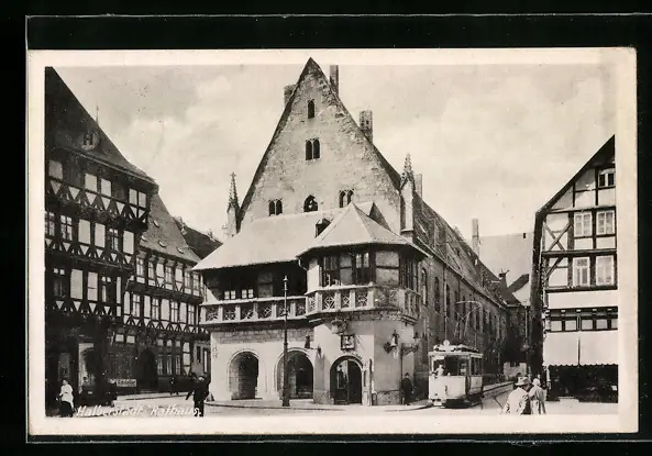 AK Halberstadt, Strassenbahn am Rathaus