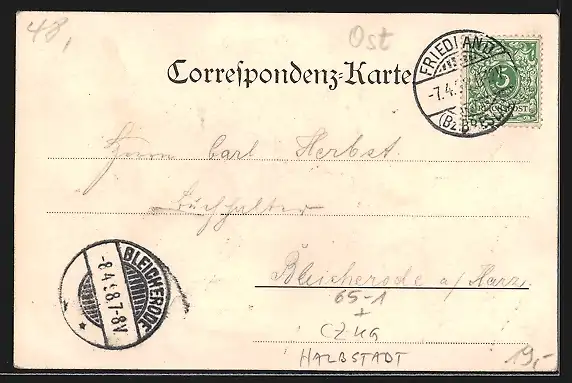alte Ansichtskarte, gelaufen 1898, guter Zustand