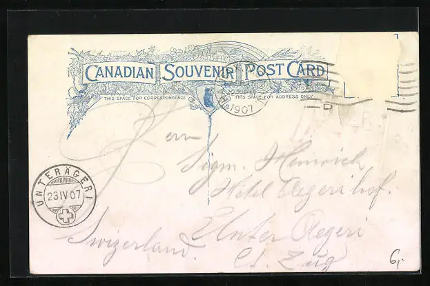 alte Ansichtskarte, gelaufen 1907, Briefmarke entfernt, rückseitig Oberflächenschaden, guter Zustand