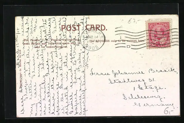 alte Ansichtskarte, gelaufen 1908, Eckknick oben li., guter Zustand