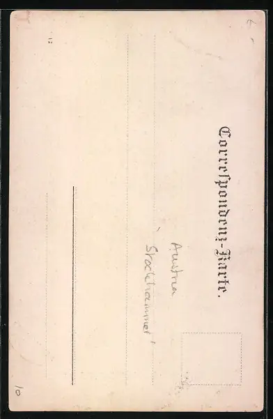 Personenbezogene Daten auf der Rückseite der Karte wurden durch blauen Textmarker unkenntlich gemacht. Die blauen Stellen sind auf die Vorderseite durchgeweicht und wirken sich negativ auf das Postkartenfoto aus