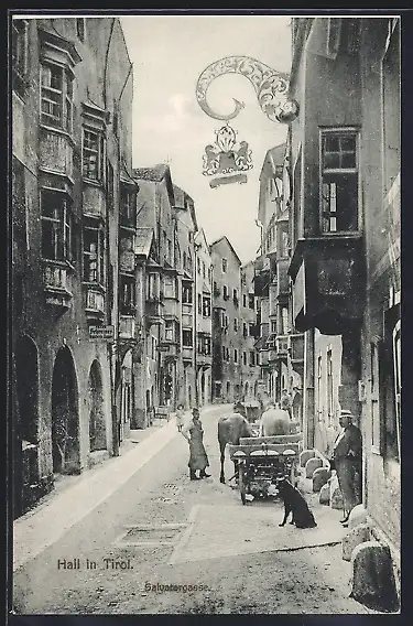 AK Hall, Strassenpartie mit Gasthof