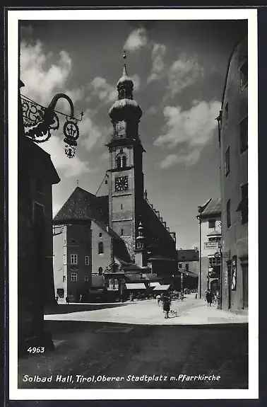 AK Hall /Tirol, Oberer Stadtplatz mit Pfarrkirche