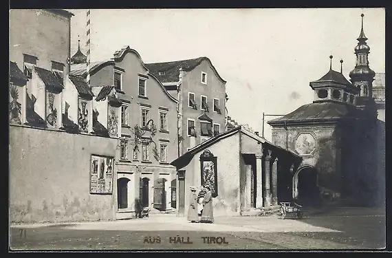 AK Hall /Tirol, Strassenpartie mit Kirche