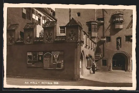 AK Hall /Tirol, Strassenpartie mit Rathaus