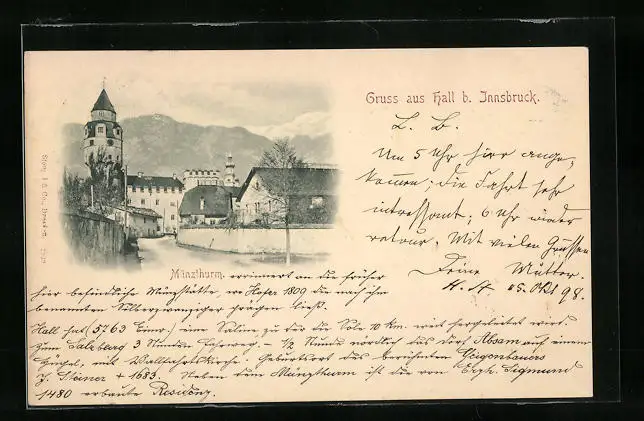 AK Hall b. Innsbruck, Strassenpartie mit Münzturm