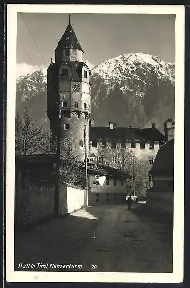AK Hall in Tirol, Münzerturm mit Strassenpartie