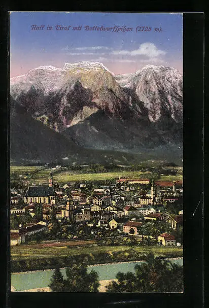 AK Hall in Tirol, Ortsansicht gegen die Bettelwurfspitzen