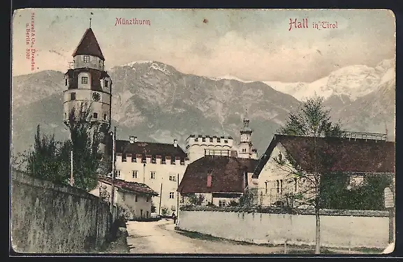 AK Hall in Tirol, Ortsansicht mit Münzturm
