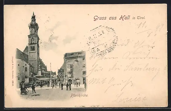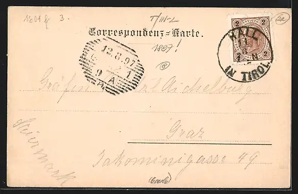 alte Ansichtskarte, gelaufen 1897, Eckknick oben links, guter Zustand