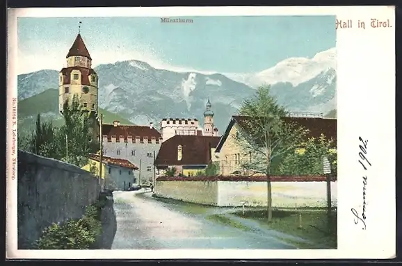 AK Hall in Tirol, Strassenpartie mit Münzturm