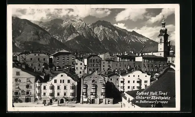 AK Hall in Tirol, Unterer Stadtplatz mit Bettelwurfgruppe