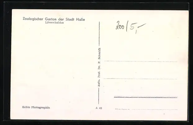 AK Halle, Drei Löwenbabies in einem Korb, Zoo