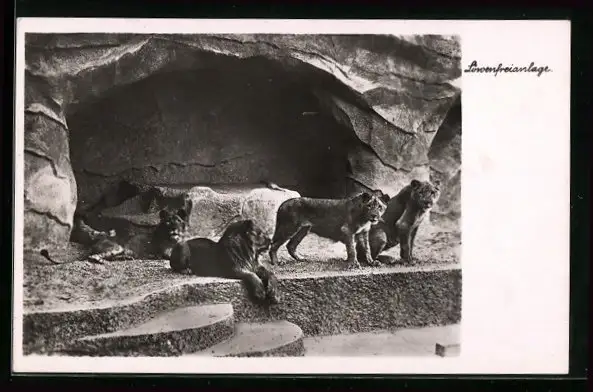 AK Halle, Löwe und drei Löwinnen im Zoo