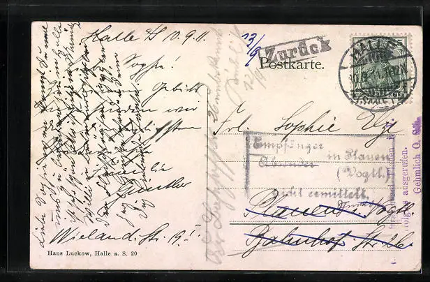 alte Ansichtskarte, gelaufen 1911, Eckknick li. oben, guter Zustand