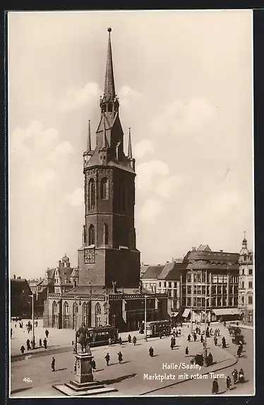 AK Halle /Saale, Marktplatz mit rotem Turm