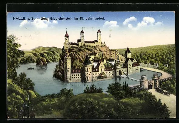 AK Halle a. S., Blick auf die Burg Giebichenstein im 15. Jahrhundert