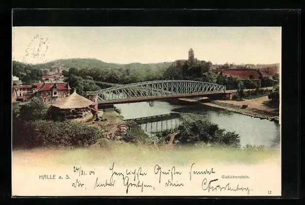 AK Halle a. S., Gesamtansicht mit Burg Giebichenstein