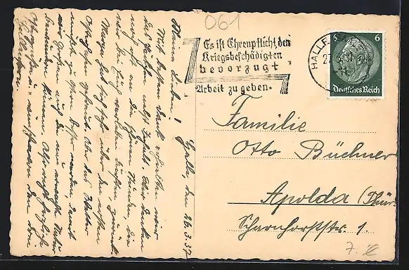 alte Ansichtskarte, gelaufen 1937, guter Zustand