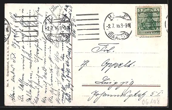alte Ansichtskarte, gelaufen 1916, Eckknick li. oben, guter Zustand