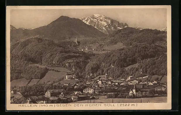 AK Hallein, Ortsansicht gegen den Hohen Göll