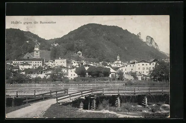 AK Hallein, Ortsansicht gegen die Barmsteine