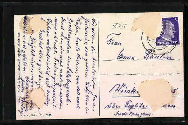 alte Ansichtskarte, gelaufen 1943, rückseitig Oberflächenschaden, guter Zustand