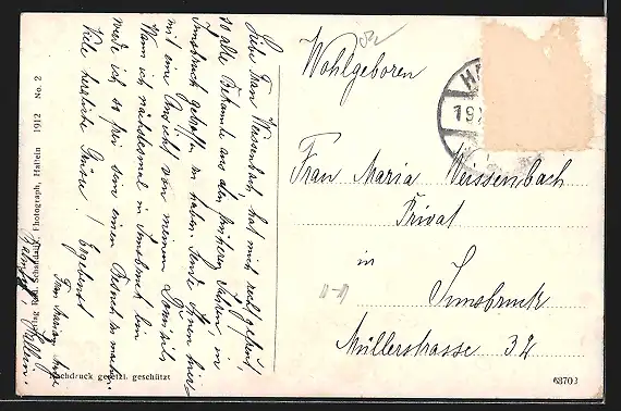 alte Ansichtskarte, gelaufen, Briefmarke entfernt, rückseitig Oberflächenschaden, guter Zustand