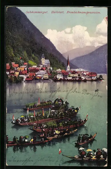 AK Hallstatt, Fronleichnamsprocession auf dem See