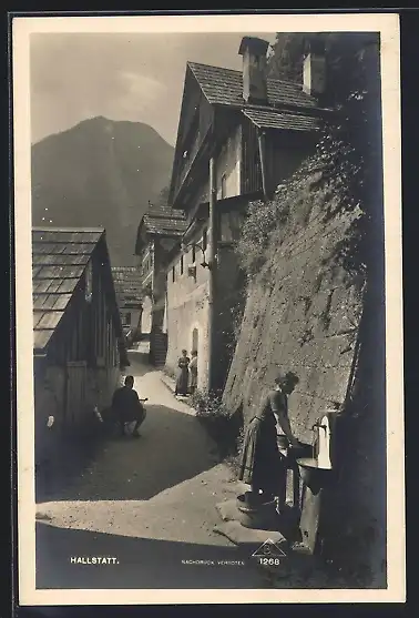 AK Hallstatt, Gassenpartie im Ort