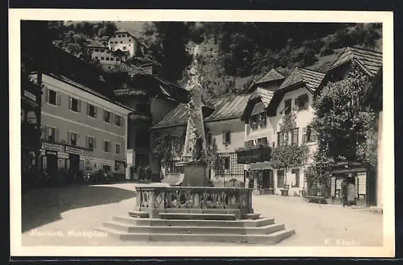 AK Hallstatt, Marktplatz mit Feinkosthandlung
