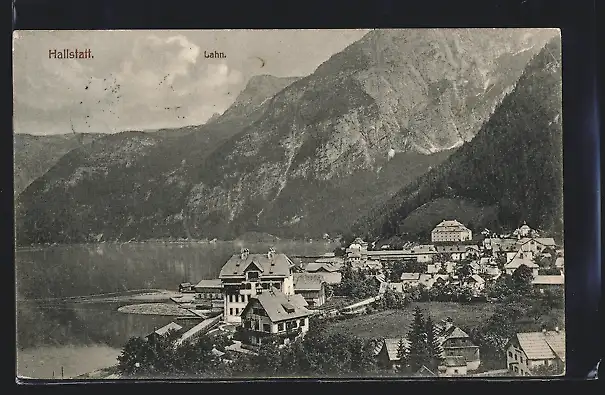 AK Hallstatt, Ortsansicht aus der Vogelschau