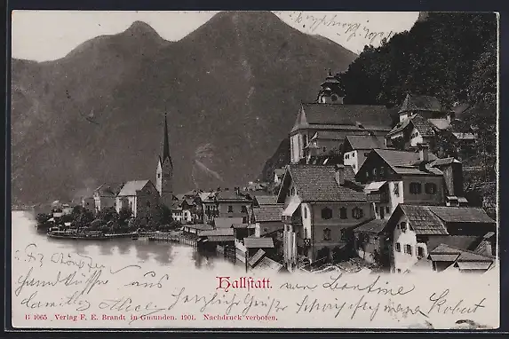 AK Hallstatt, Ortsansicht aus der Vogelschau