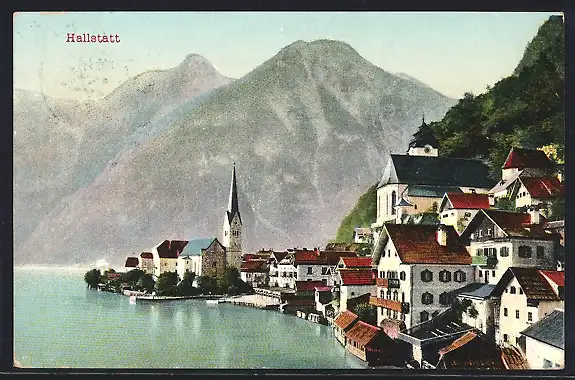 AK Hallstatt, Ortsansicht mit Kirche am Wasser