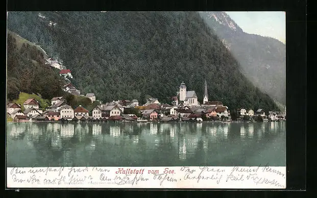 AK Hallstatt, Ortsansicht vom See aus
